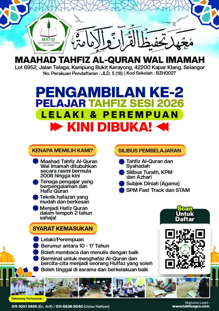 1. Maahad Tahfiz Al-Quran Wal Imamah (MATQI) telah ditubuhkan secara rasmi bermula 2008 hingga kini (17 tahun pengalaman)